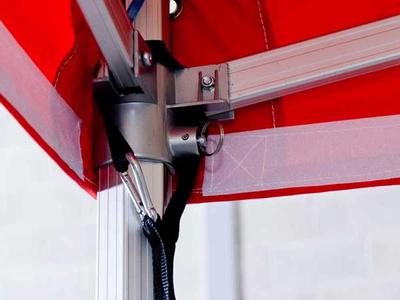 A rögzítés az alapja annak, hogy egy rendezvénysátor hosszú távon is szolgálja boldog tulajdonosát. Ha a pavilon rögzítése nem megfelelő, akkor egy kisebb vihar is komoly anyagi kárt tud okozni egy összecsukható rendezvénysátorban. Tehát a rögzítőkészlet négy darab 36 cm-es acélcövekből és 4 darab masszív spaniferből áll. Ezek segítségével tudjuk rögzíteni a sátrat arra alkalmas területen. Lehet ez föld, füves talaj, homok stb. Minden, amit puha talajnak nevezünk és cövekelhető.