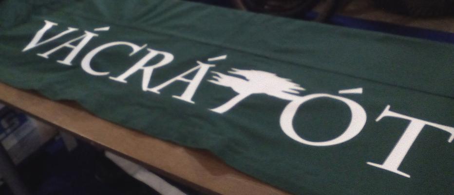 Mostanában jó messzire viszünk cuccokat, egy hete például Nyékládházára utaztam, ahova egy 6-szor 3 méteres sátrat vittünk, meg egy csomó fémsúlt.. De azt megelőzően csak a szomszédba, Vácrátótra, ahol az ismert raliversenyző barátunknak vittem egy frissen nyomott, Vácrátót-felirattal ellátott tetőponyvát. Igen, ezt is mi nyomtattuk.